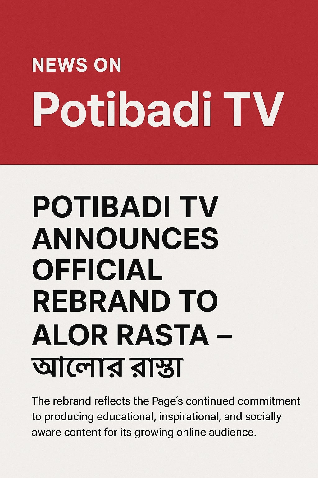 Potibadi TV Officially Rebrands to “Alor Rasta – আলোর রাস্তা”