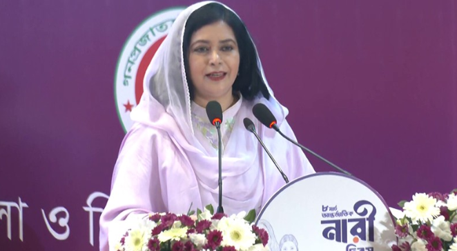 আজ রোববার (৮ মার্চ) রাজধানীর ওসমানী স্মৃতি মিলনায়তনে মহিলা ও শিশু বিষয়ক মন্ত্রণালয়ের উদ্যোগে আন্তর্জাতিক নারী দিবস উপলক্ষে আয়োজিত অনুষ্ঠানে তিনি এ কথা বলেন। ডা. জোবায়দা রহমান বলেন, শত অত্যাচার ও প্রতিকূলতার মাঝেও দেশনেত্রী বেগম খালেদা জিয়া ছিলেন অদম্য ও অবিচল। তিনি আমাদের জন্য সাহসের অনুপ্রেরণা। আমরা বিশ্বাস করি, নারী এগিয়ে গেলেই একটি জাতি প্রকৃত অর্থে এগিয়ে যায়। তিনি বলেন, আমরা এমন এক বাংলাদেশ গড়তে চাই, যেখানে প্রতিটি নারী পূর্ণ নিরাপত্তা পাবেন। এবারের নারী দিবস হোক সাম্যতা, ন্যায্যতা এবং ন্যায়বিচার প্রতিষ্ঠার এক বলিষ্ঠ অঙ্গীকার।এর আগে অনুষ্ঠানে বিএনপির প্রয়াত চেয়ারপারসন খালেদা জিয়াসহ ছয় নারীকে ‘শ্রেষ্ঠ অদম্য নারী’ সম্মাননা দেওয়া হয়। খালেদা জিয়ার পক্ষে এ সম্মাননা গ্রহণ করেন তার নাতনি ব্যারিস্টার জাইমা রহমান। এছাড়া বিভিন্ন ক্ষেত্রে অবদানের জন্য আরও পাঁচজন নারীকে সম্মাননা দেওয়া হয়। তারা হলেন-‘অর্থনৈতিক ক্ষেত্রে সাফল্য অর্জনকারী নারী’ ক্যাটাগরিতে নুরুন নাহার আক্তার, ‘শিক্ষা ও চাকুরিক্ষেত্রে সাফল্য অর্জনকারী নারী’ ক্যাটাগরিতে মোছা. ববিতা খাতুন, ‘সফল জননী নারী’ ক্যাটাগরিতে নুরবানু কবীর, ‘নির্যাতনের দুঃস্বপ্ন মুছে ফেলে জীবন সংগ্রামে জয়ী নারী’ ক্যাটাগরিতে মোছা. শমলা বেগম এবং ‘সমাজ উন্নয়নে অসামান্য অবদান রাখা নারী’ ক্যাটাগরিতে মোছা. আফরোজা ইয়াসমিন।